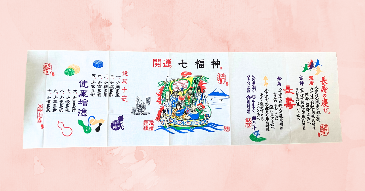 7つの神様は「恵比寿、大黒天、毘沙門天、弁財天、布袋尊、福禄寿、寿老人」です。